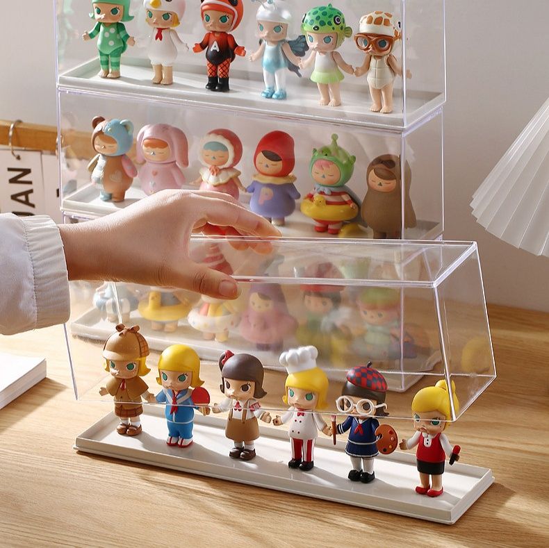 透明な素材で各段が見やすく、お気に入りのコレクションを一度に楽しめるタイプです。