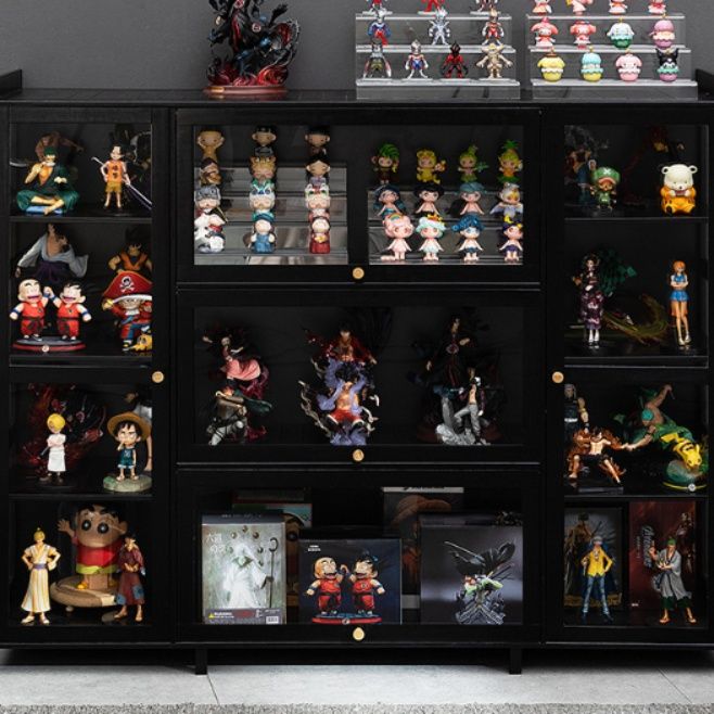 透明なガラス扉が埃や汚れから守りながら、中のアイテムを鑑賞しやすく保ちます。