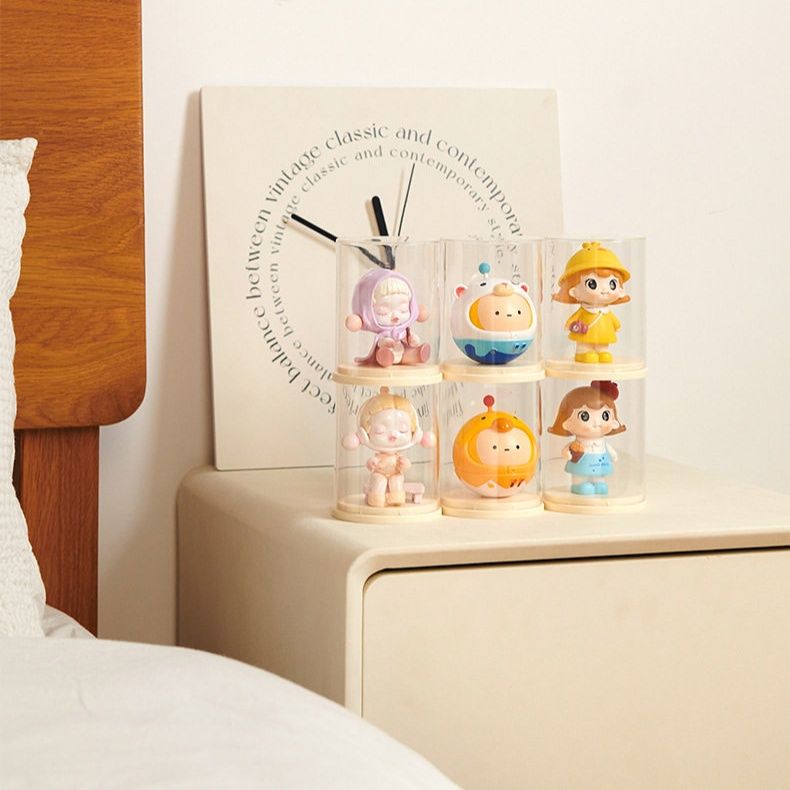 透明な円筒形状で全方向から中身を鑑賞できるため卓上展示に最適です。